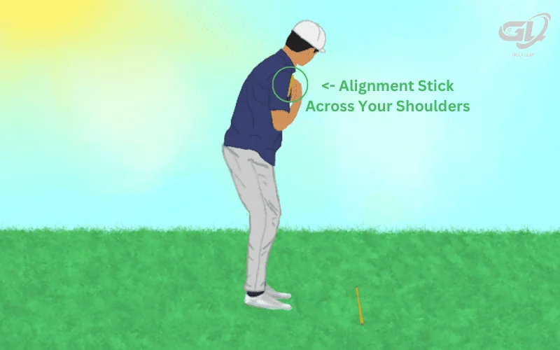 Taking the same alignment stick we used to check our feet, place it horizontally across your waist and make sure it points parallel left to your target line or in the same direction as your feet line.