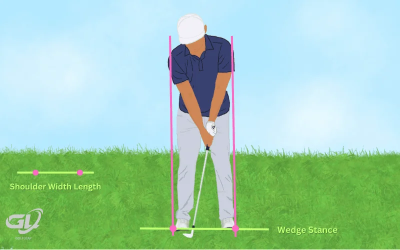 Since each golf club category (wedges, irons, and woods/driver) is different lengths, the width your feet are apart in your stance will change depending on which club you’re swinging.
